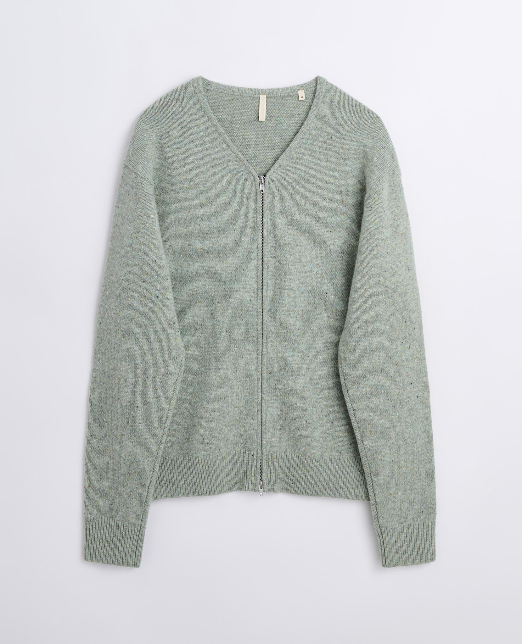 A knitted zip cardigan in a vibrant Donegal yarn.