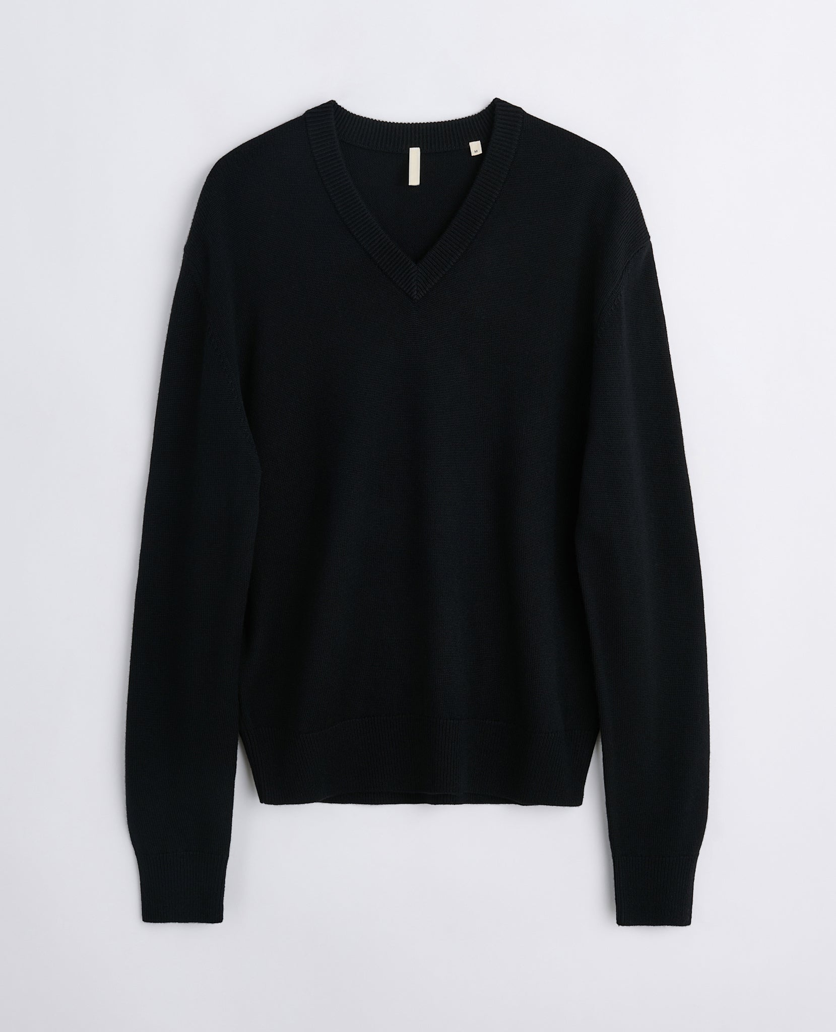 A knitted v neck jumper in a classic Moon fit. Knitted with 100% fine Merino yarn.