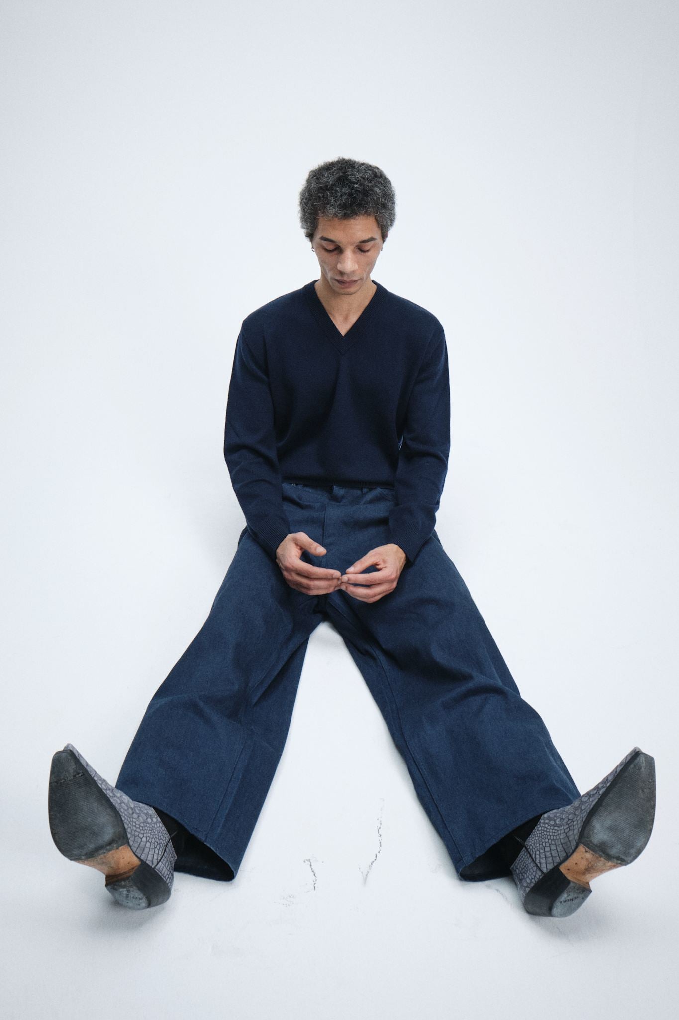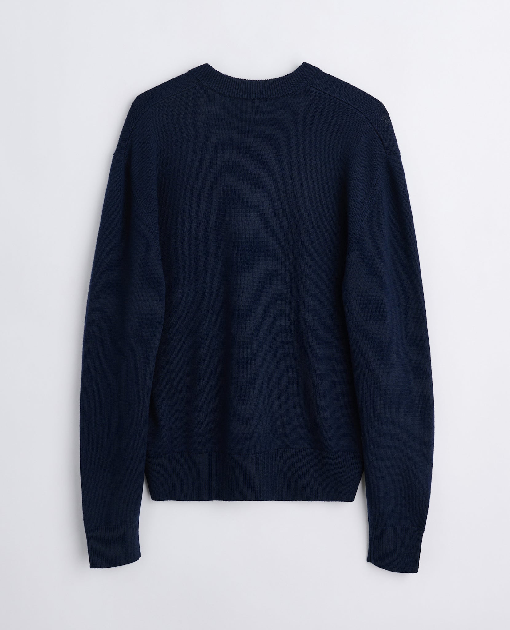 A knitted v neck jumper in a classic Moon fit. Knitted with 100% fine Merino yarn.