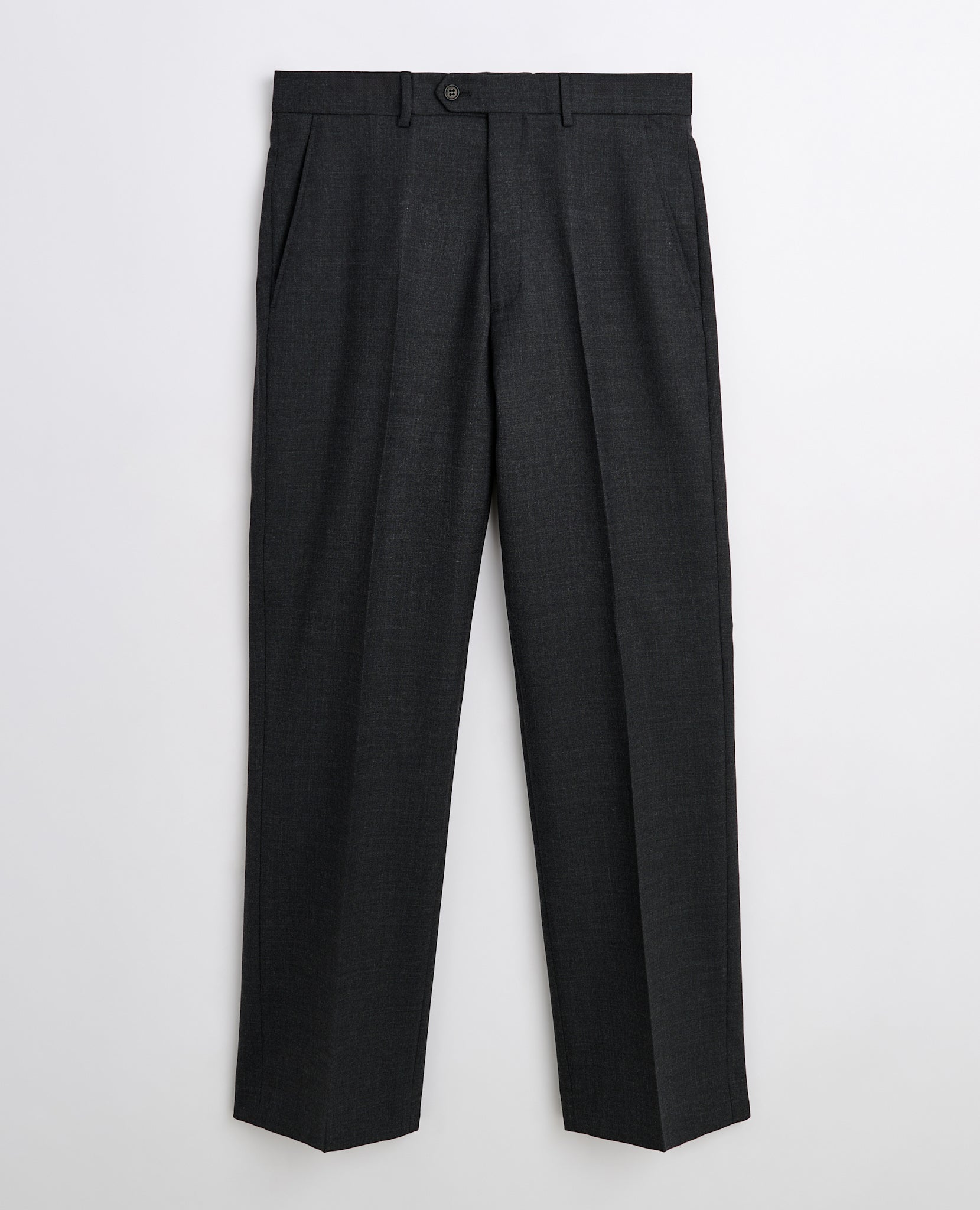 Pleated loose-leg trousers with a hook-and-eye closure in a loose fit. Made in a dense wool twill.