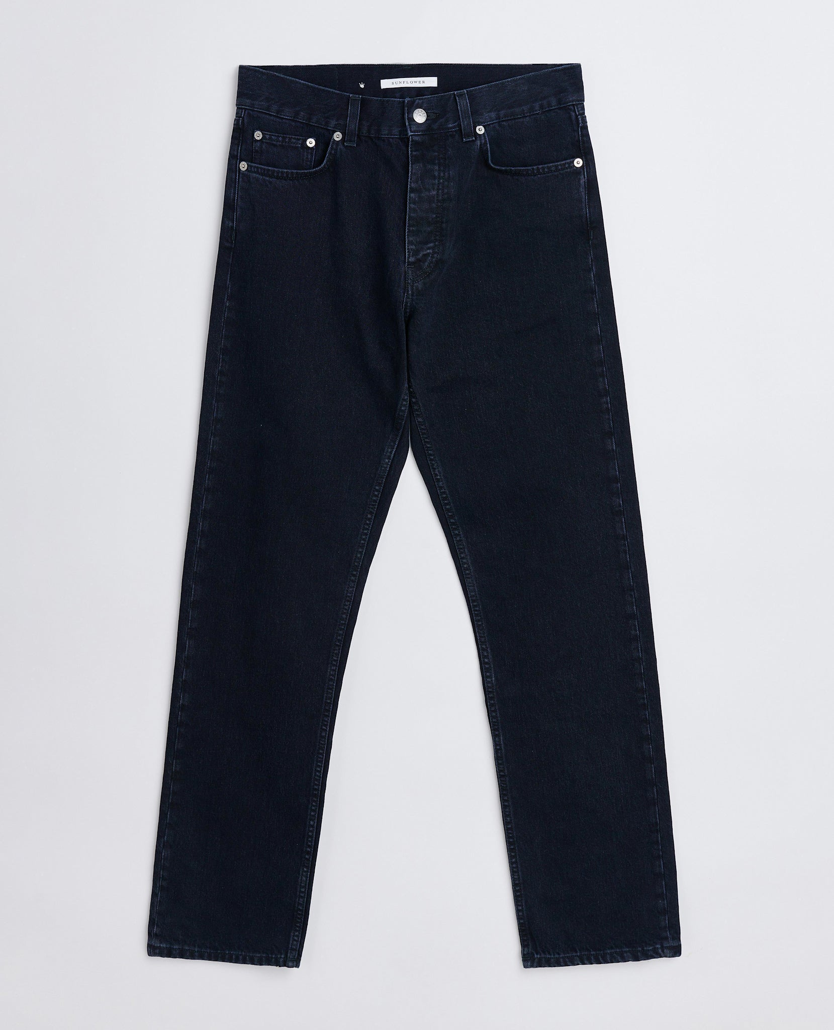 Standard fit in a 14 oz right hand twill denim. Classic indigo dye in the base with a black overdye, slightly faded out to bring out a distinctive blue black tone