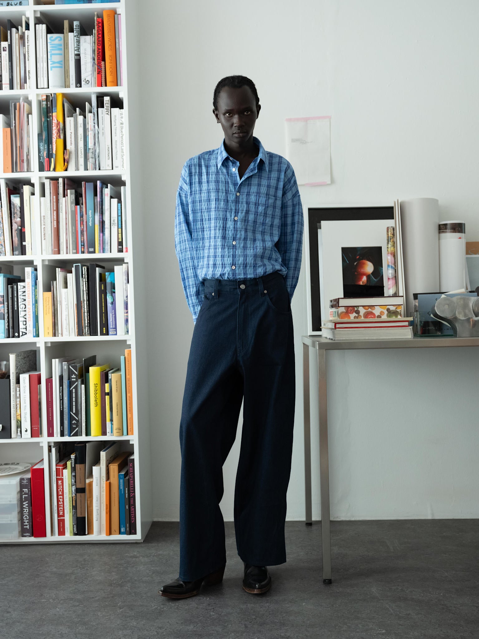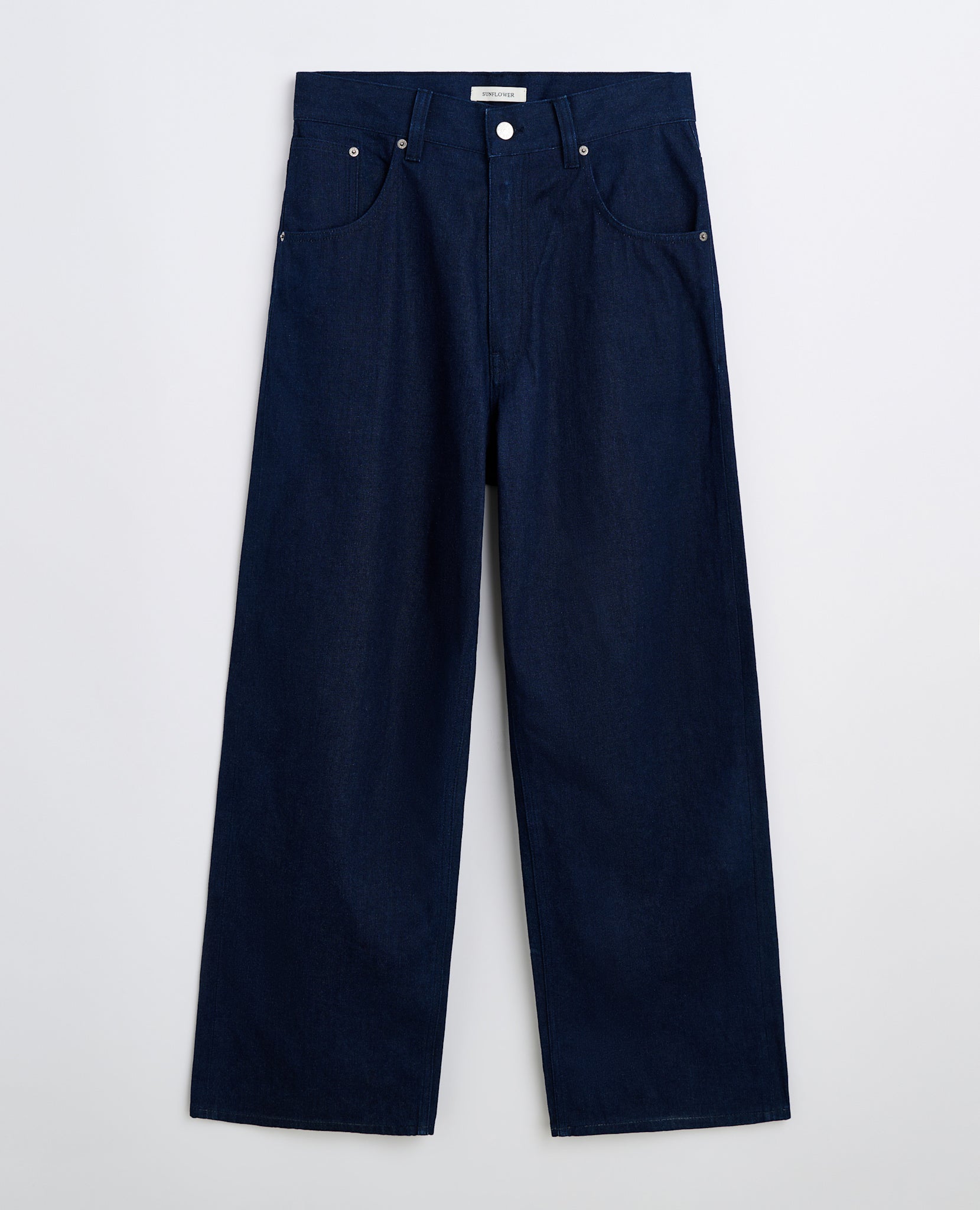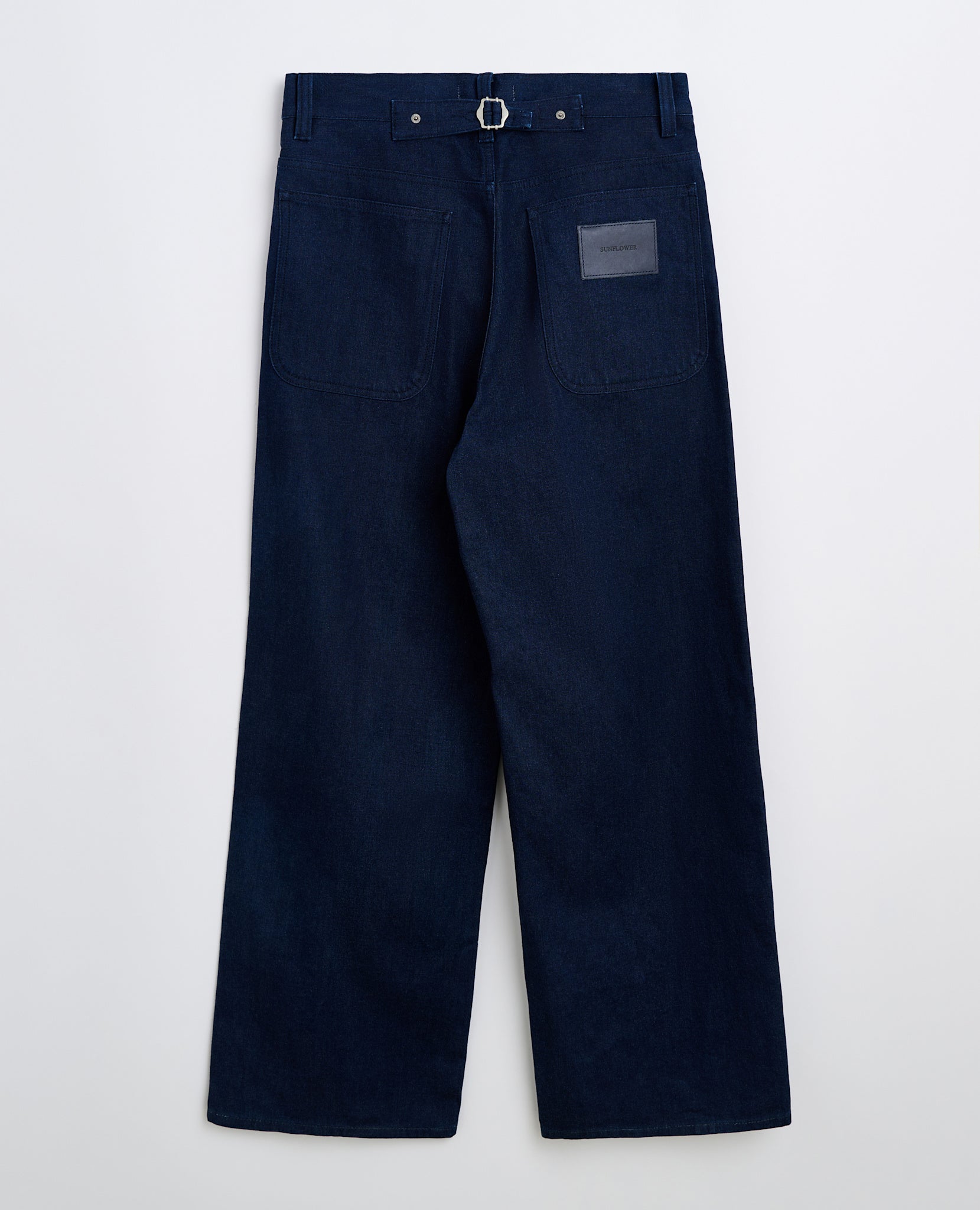 Wide denim with an oversized leg yet fitted at waist and a classic cinch back detail