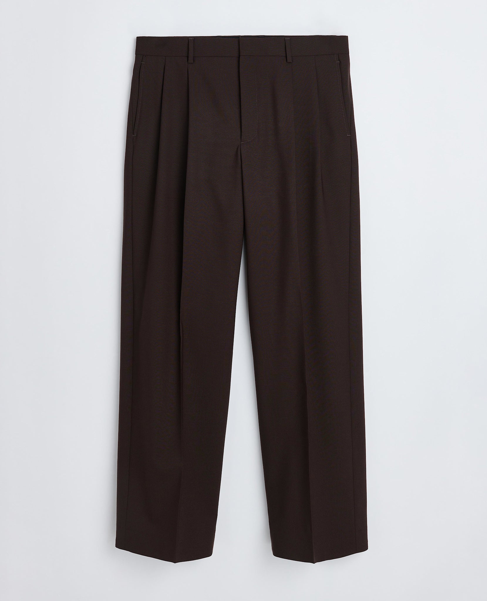 Double pleated wide-leg trousers with a hook-and-eye closure in a loose fit. Made in a dense wool twill.